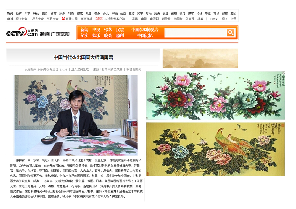 潘勇君,男,汉族,笔名:叁人参,辽宁省美术家协会会员 1963年7月9日生于内蒙,现居北京,自幼受家庭条件的熏陶和影响,9岁开始习儿童画,12岁开始习国画,随着年龄的增长,逐年累月的认真反复钻研潘天寿、齐白石、张大千、付抱石、李可染,刘奎铃、民国四大家、八大山人、石涛、唐伯虎、郑板桥等名人大家的作品,国画创作锲而不舍,推陈出新、创作出自己的画风画派,别具一格,层多次参加全国大、中型书画大赛并获金奖、银奖。 近年来,先后为新加坡、爱尔兰、韩国、日本、美国等国绘画其作品以工笔画为主,主绘工笔牡丹、人物、动物、写意牡丹、花鸟等,还擅长山水,深受中外友人青睐和收藏。主要获奖作品:在胜利的曙光-井冈山胜利会师80周年全国书画大赛中,墨竹《清歌漫舞》经书画艺术节权威人士组成的评委会认真评审,荣获金奖。特授予“中国当代书画艺术领军人物”光荣称号。