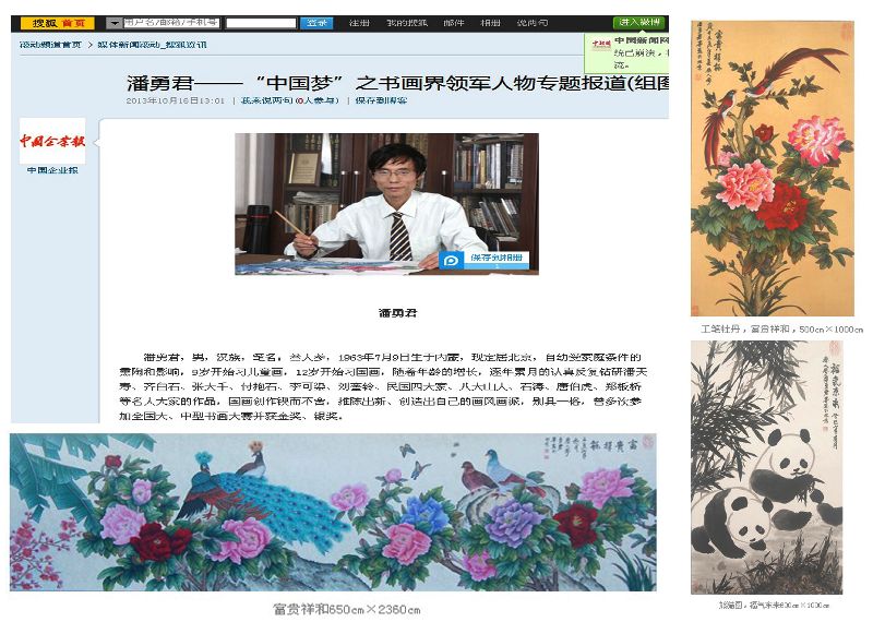 搜狐网报道-------潘勇君---“中国梦”之书画界领军人物